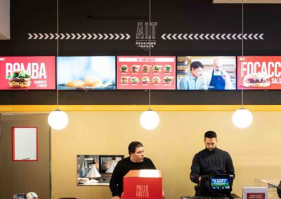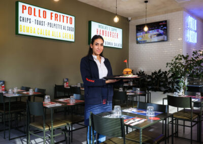 Il lavoro si è concentrato sugli spazi, sui prodotti e sull’interazione con i sistemi digitali di ordinazione, raccontando l’integrazione tra food e tecnologia nel punto vendita.